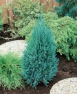 Крона вузькоконічна, щільна, природно симетрична. Хвоя сизо-блакитно-зелена, густа, з холодним відтінком. Рослина зберігає акуратність без постійної стрижки.
