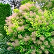 Сонячний вибух кольору з ефектом «димчастих» хмар у період цвітіння. Golden Lady — це яскрава жовтолиста скумпія, яка створює світловий акцент і водночас додає композиції об’єму завдяки своїм пухнастим суцвіттям.