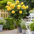 Ефектна штамбова форма з великими яскраво-жовтими квітами, що створюють сонячний акцент у саду.